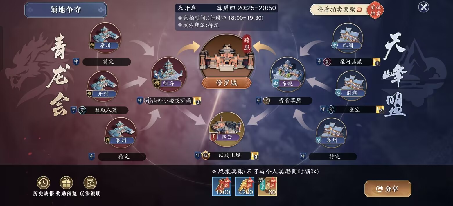 大帮少侠必参加!周二参加了领地争夺的帮派可以参加修罗城,不参加同样有奖励,但是奖励较少同时也没有金箱子。