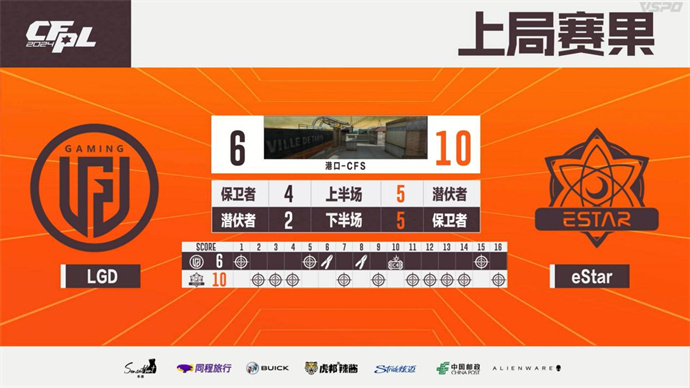 图1港口-CFS,上半场双方打的胶着,失心上演五杀操作,李鑫B仓库三连杀,eStar领先1分,易边后B1n旋转位三连杀,eStar越战越勇以10-6先下一城,B1n获得MVP。