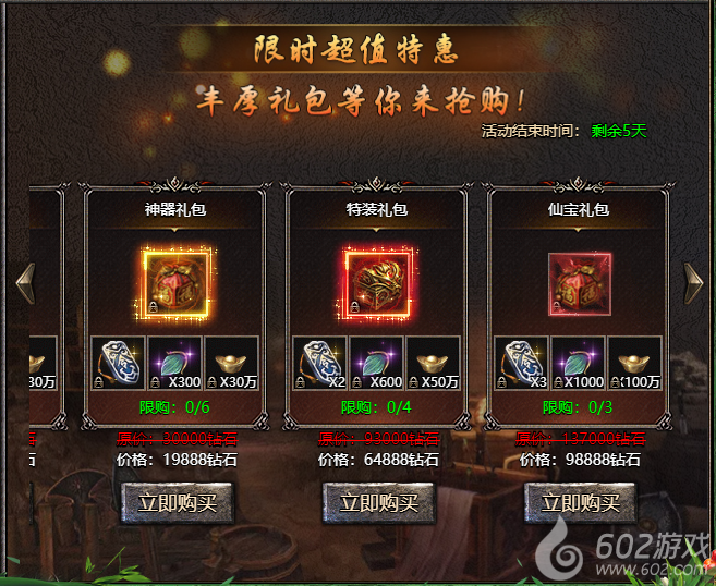 活动说明:活动期间将上架各种骨折特惠礼包供玩家购买。