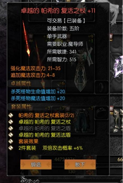 卓越叠加:这里卓越属性可以叠加上去,打怪爆的装备卓越属性只有1-2条,同样的装备可以叠加卓越属性。