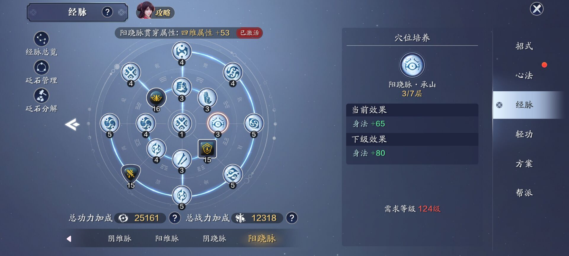124级经阳跷脉开放4个穴位升级,需要400+个精纯石母。同时三角小石终于开放16级了,8个砭石总共需要13组精纯石母,少侠们的库存石母有用武之地啦。但是想要直接把所有的三角小石一次拉满,估计还是有一些难度,少侠们还请提前预留。