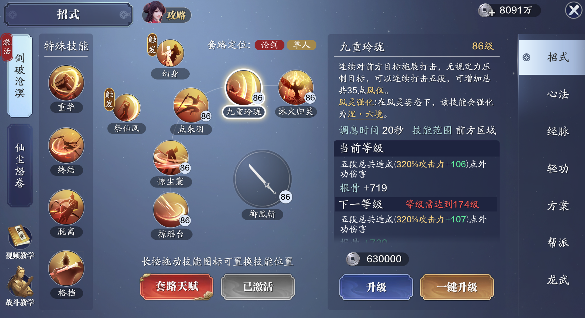 这是锁定技能极速向目标突进,对对手进行伤害和破定,立即后撤。命中敌人后,可激活技能祭仙风(击飞),可以击飞破定的目标。