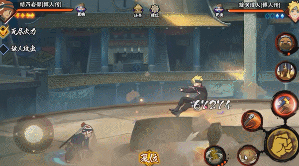 结乃岩部在长棍状态下使用奥义会释放土遁·瓦岩棍,此时他会将长棍插入土中,击飞面前的敌人,同时将岩石附着在长棍上化作大锤。