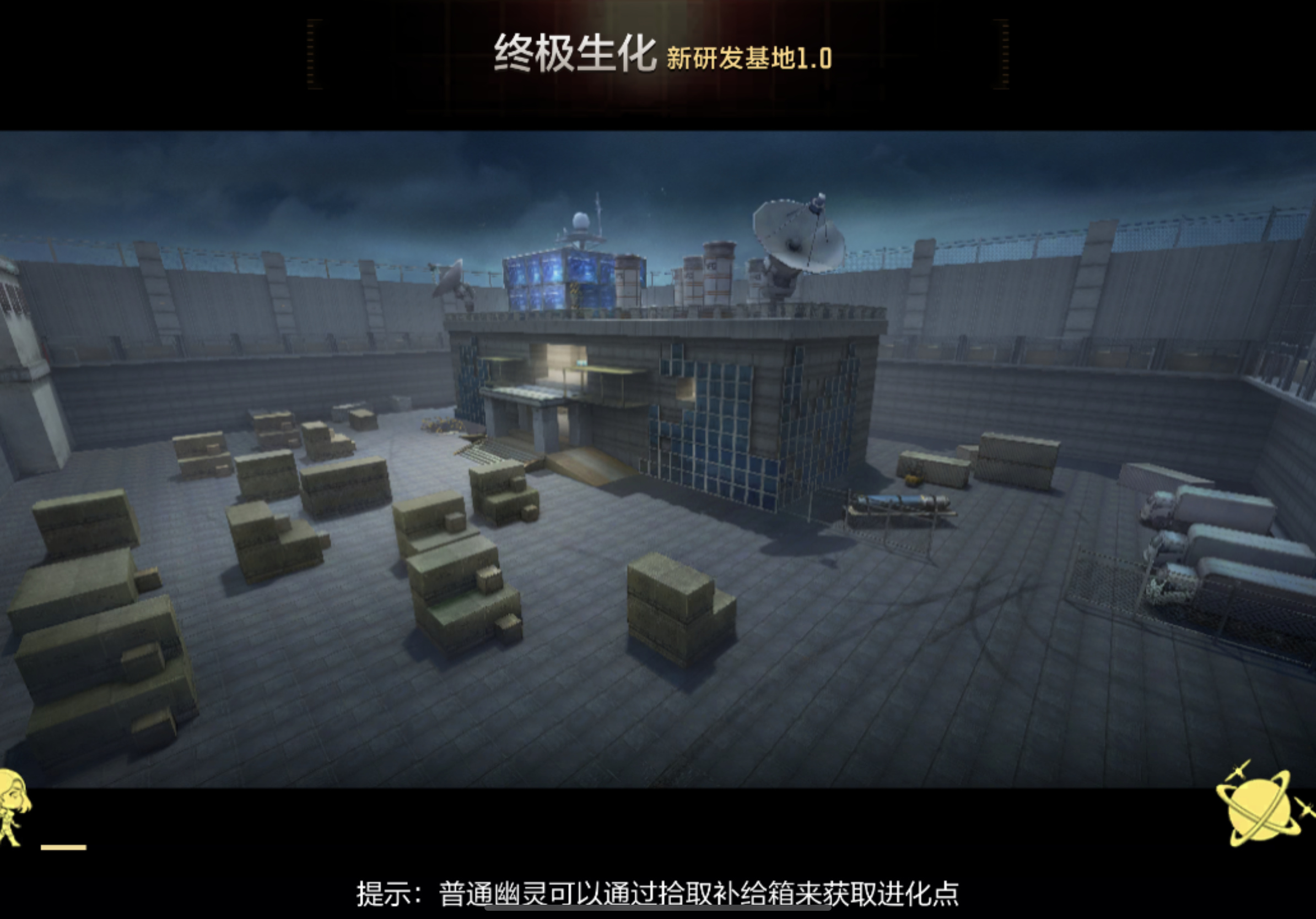 首先观察一下地图能够变成终极英雄“蓝箱子”的位置(随机生成不代表唯一位置)蓝箱子分布较为分散,大致会围绕研发基地附近或内部生成两个箱子,零散集装箱附近生成两个箱子,因此在高墙守点后,获取难度较难。