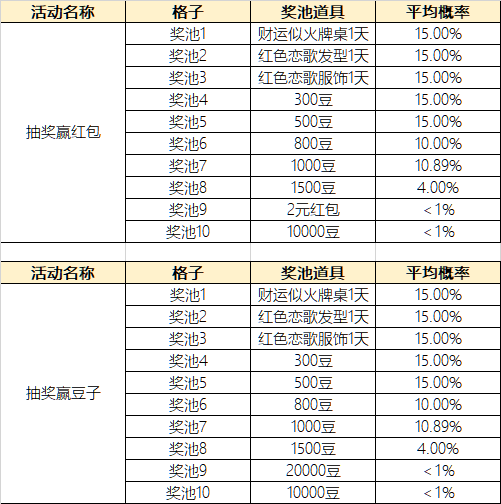 用户在雀神衣橱活动中寻宝10次即可获得全部奖励,每次参与100%获得奖池中的一件奖品;每个奖品仅能获得一次,已获得的奖品将从奖池中移除,该奖品所对应的概率将有剩余仍在奖池中的奖品根据上一轮的相应概率按比例瓜分,总中奖率仍为100%。