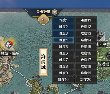 如果少侠对于当前关卡难度挑战困难,又或者以往层数有更好的共鸣(例如:生财),可以选择调整关卡难度,到以往已通关的关卡难度中重新挑战据点。
