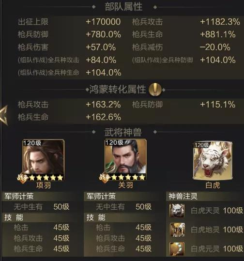 防守方的采取了项羽+关羽的双羽组合,属性基本一致。