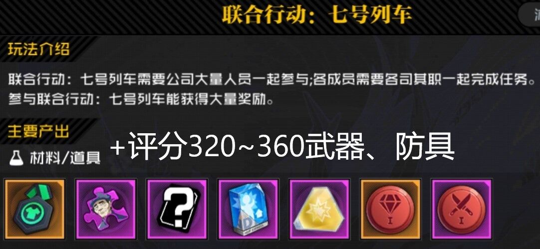 每周三次,每日最多一次,每次消耗门票-七号列车情报100张,其为当前版本内难度第二玩法(第一为魔影列车,相当于更难的列车玩法)。