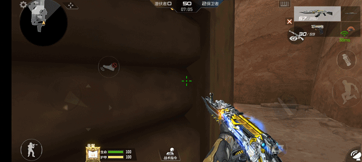 其实岩石洞窟也是可以使用狙击枪的,因为在这张地图里已经为狙击手准备了狙击点位,就在潜伏家前的小平台,狙击玩家跳上指定的石台阶,就可以狙击到对面平台的保卫者,不过这个点位需要狙击技术较好,不然很容易很容易变成对手的靶子。