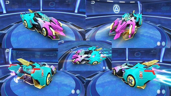 幻天流影主色调为粉蓝渐变色,未来设计感十足,车身采用元素喷漆,幻彩四射,适用于各种环境,一体式底盘设计在平滑赛道极具优势,温变引擎的研制,标志着渐变色赛车革命的到来。